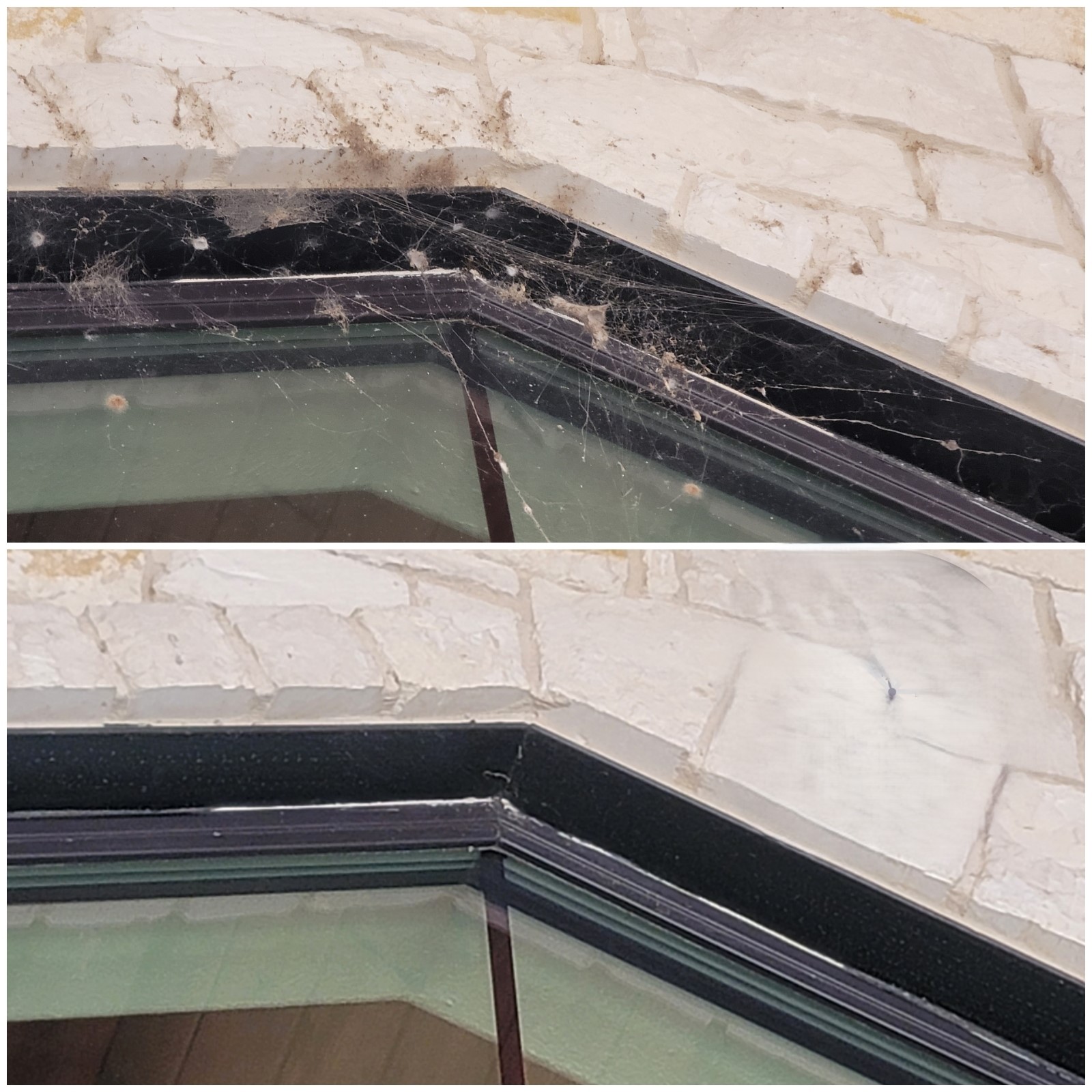 Thorough cobweb removal from eaves and overhangs